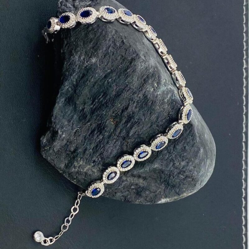 Frauen Armband 100%925 Silber Blau safirstein mit Zikron Stein bearbeitet passt für jeden Arm